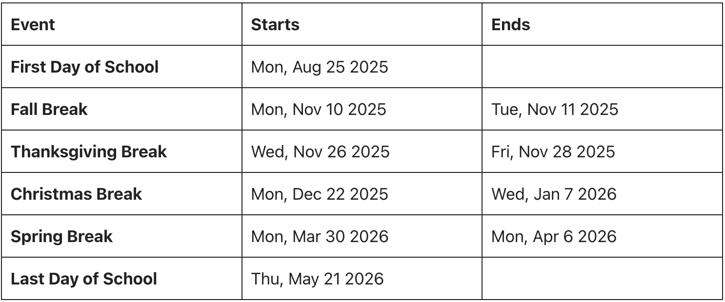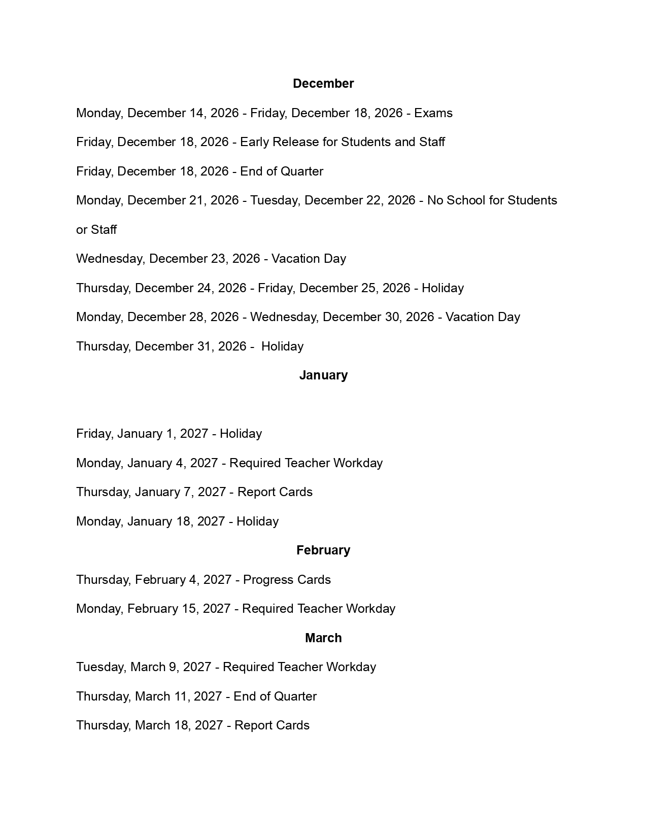 Families benefit from the calendar by being able to coordinate vacations, appointments, and extracurricular commitments around school schedules. This alignment reduces conflicts and ensures that students do not miss important instructional time. It also allows families to make the most of holiday breaks by planning trips or activities that enhance bonding and relaxation.