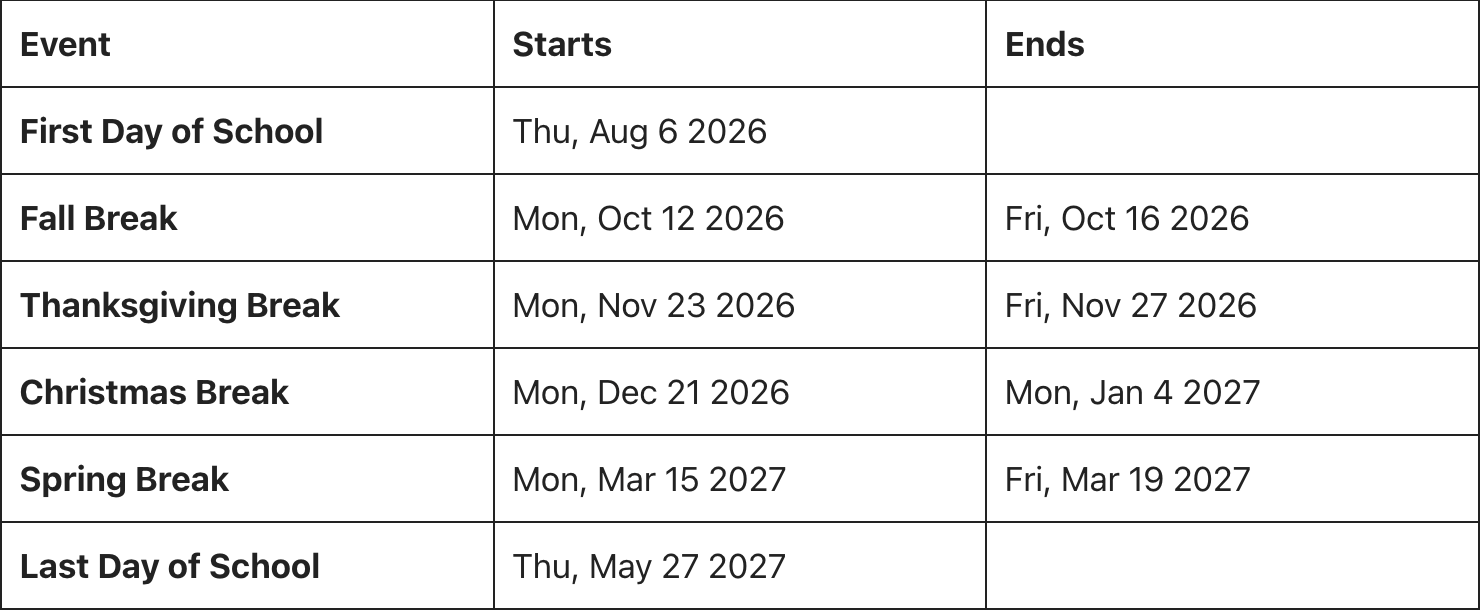 Spring break, usually scheduled in March or April, offers another week-long pause, giving students and teachers a chance to recharge before the final stretch of the school year.