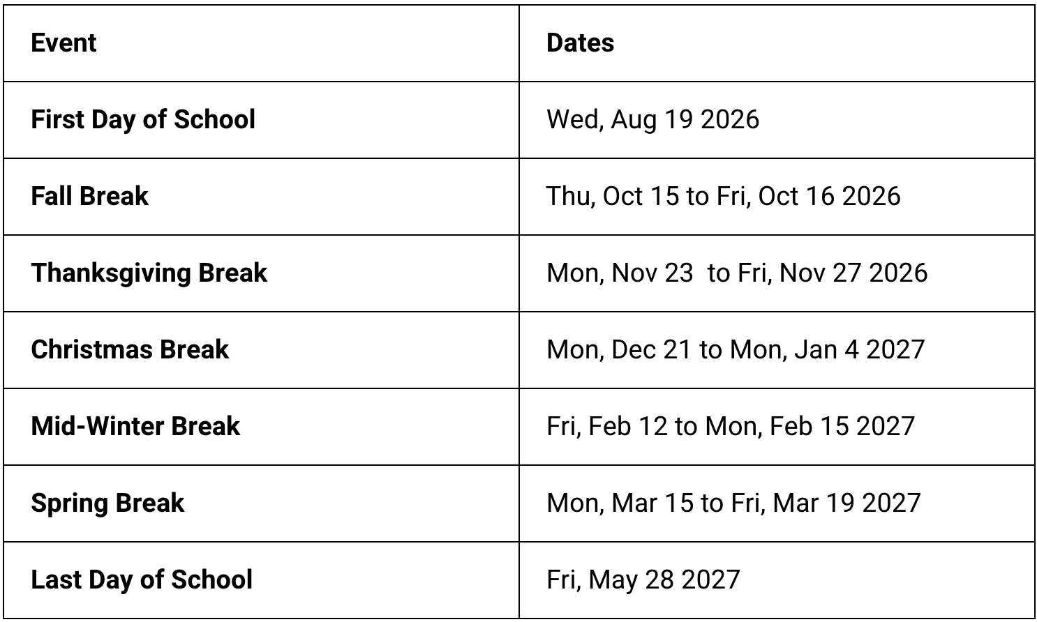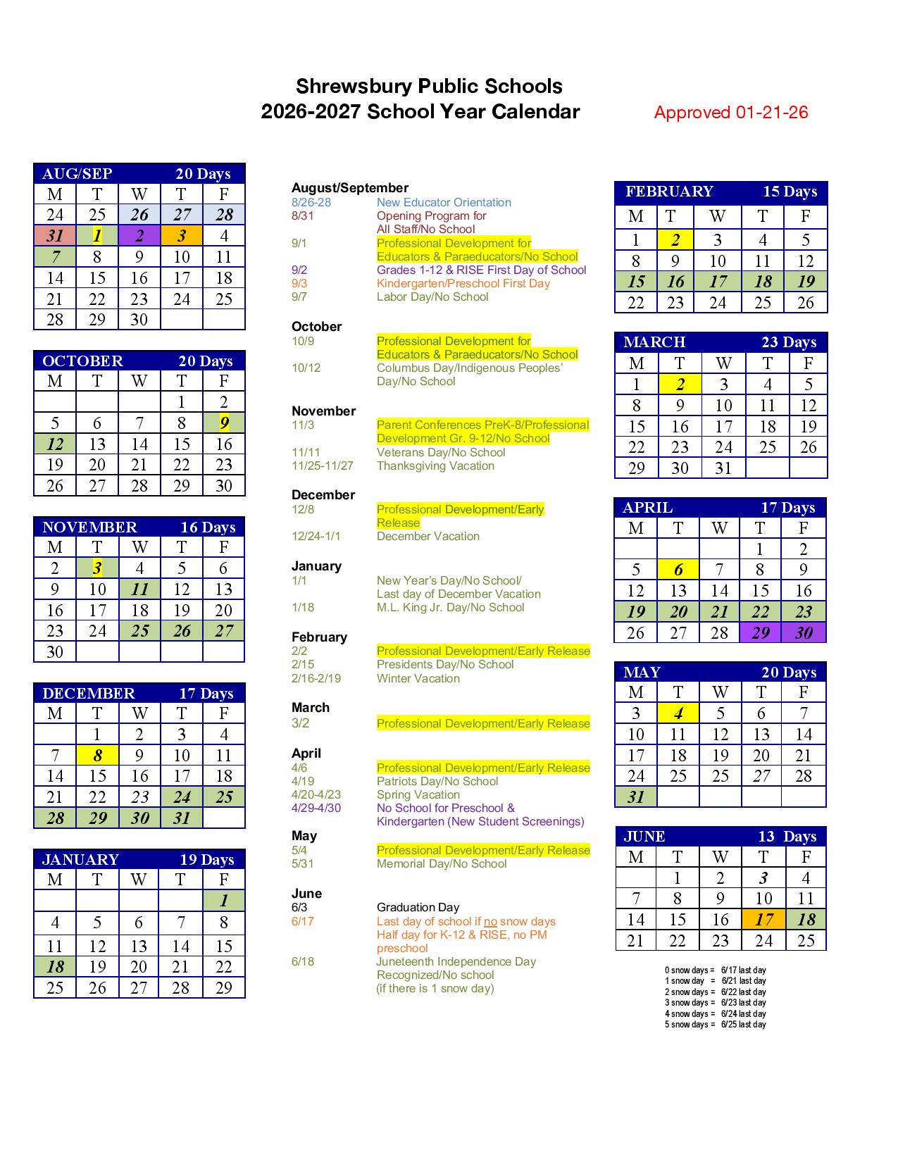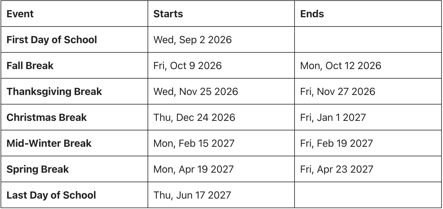 Overview of 2026-2027 School Calendar