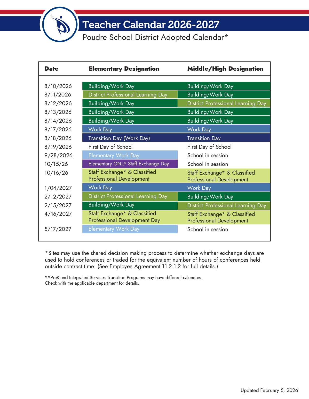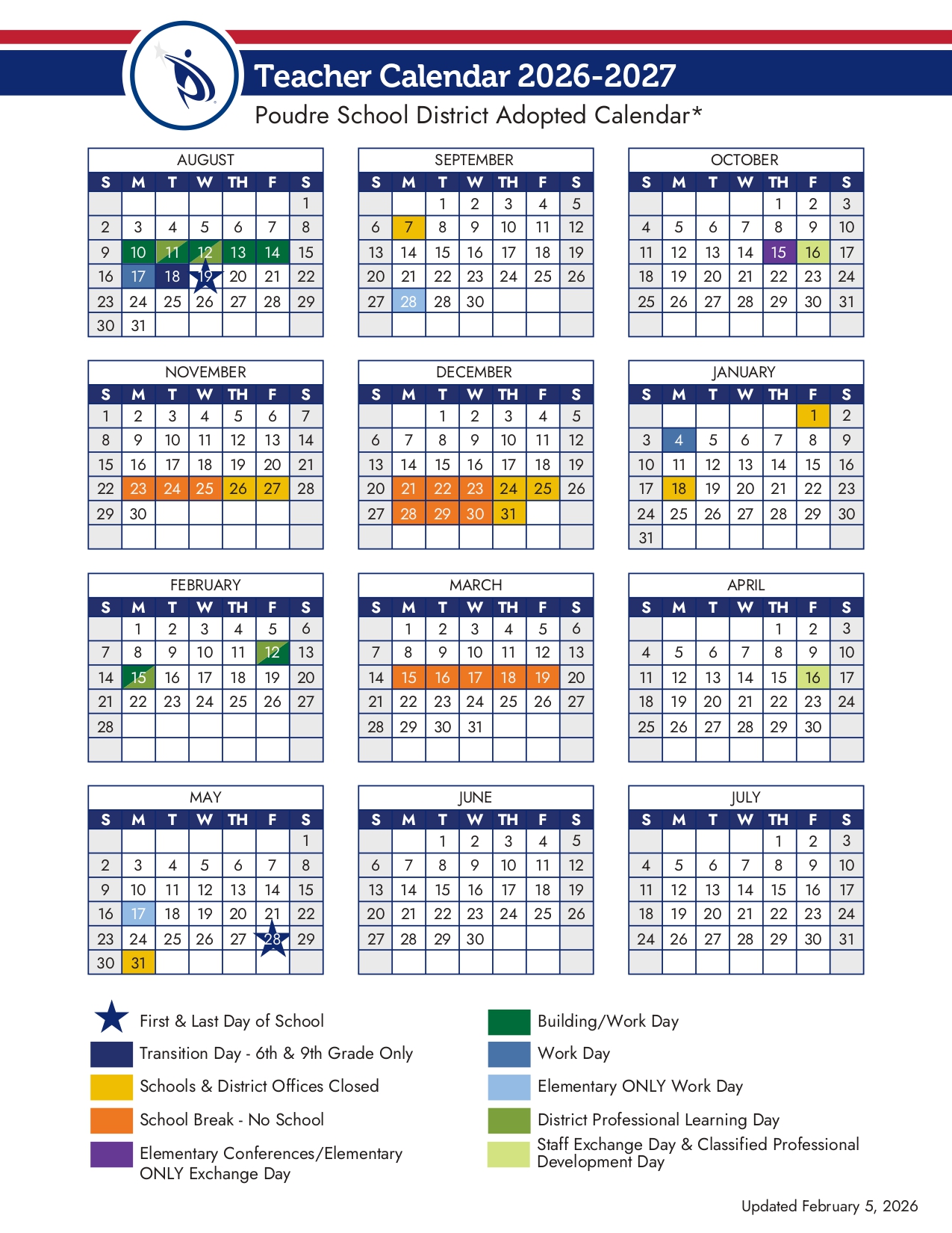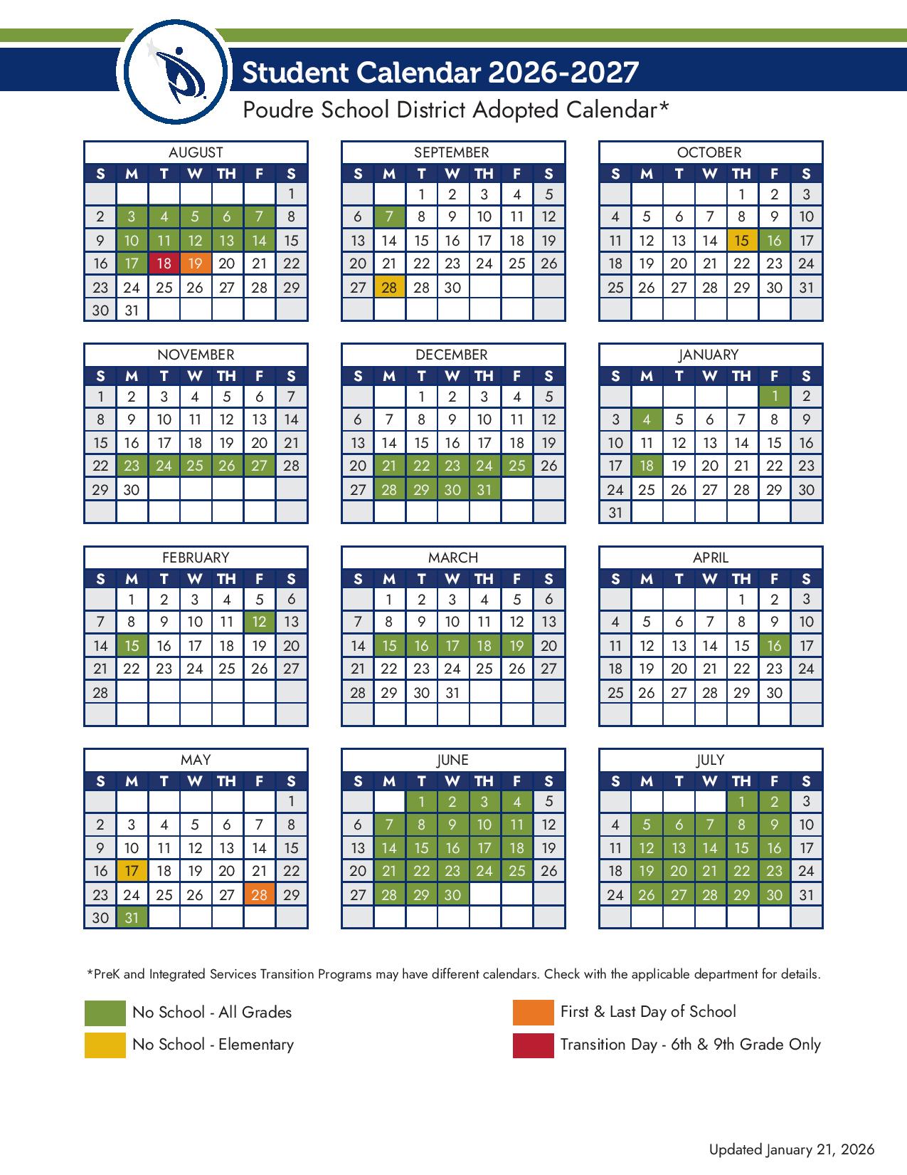 Poudre School District Calendar 2026-2027