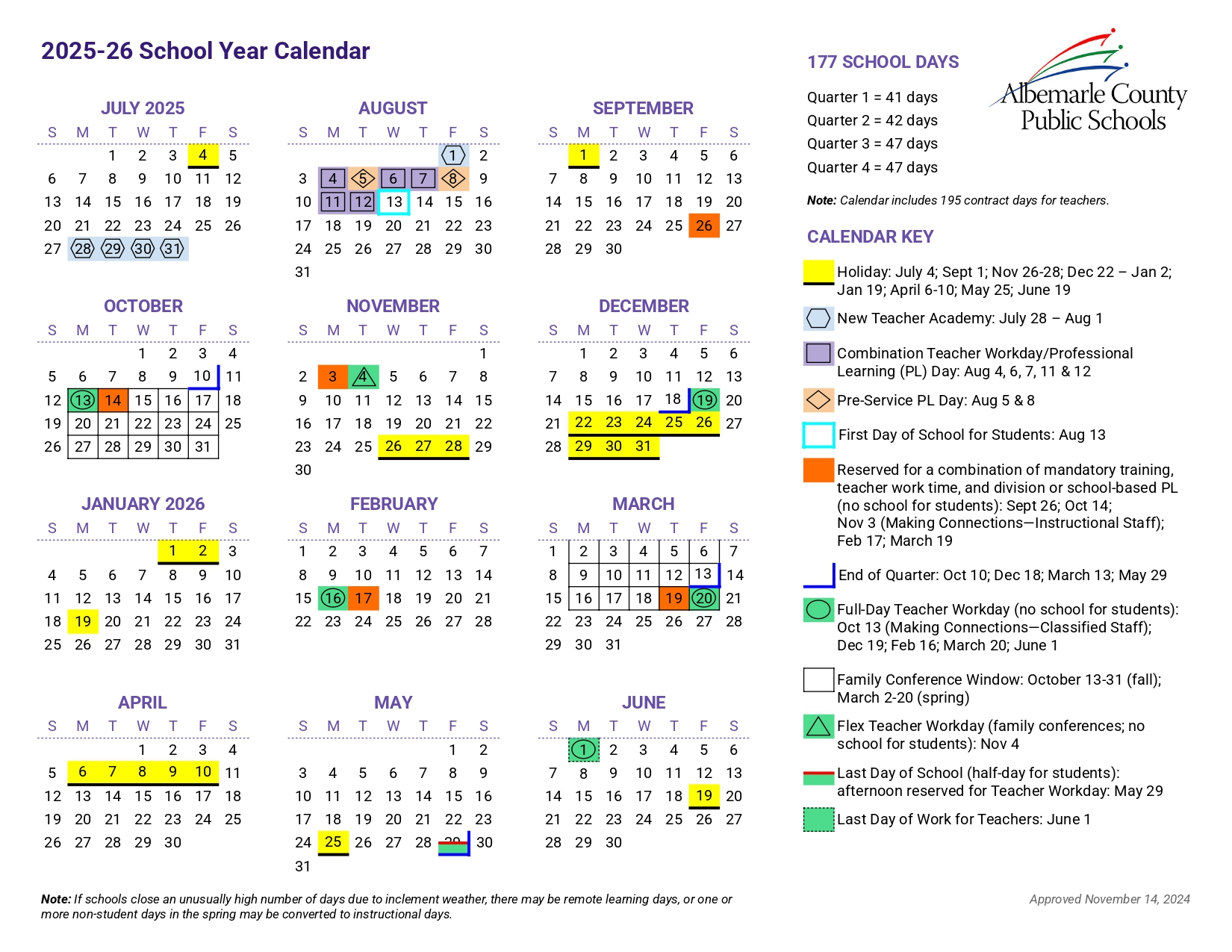 Albemarle County Public Schools Calendar 2025-2026