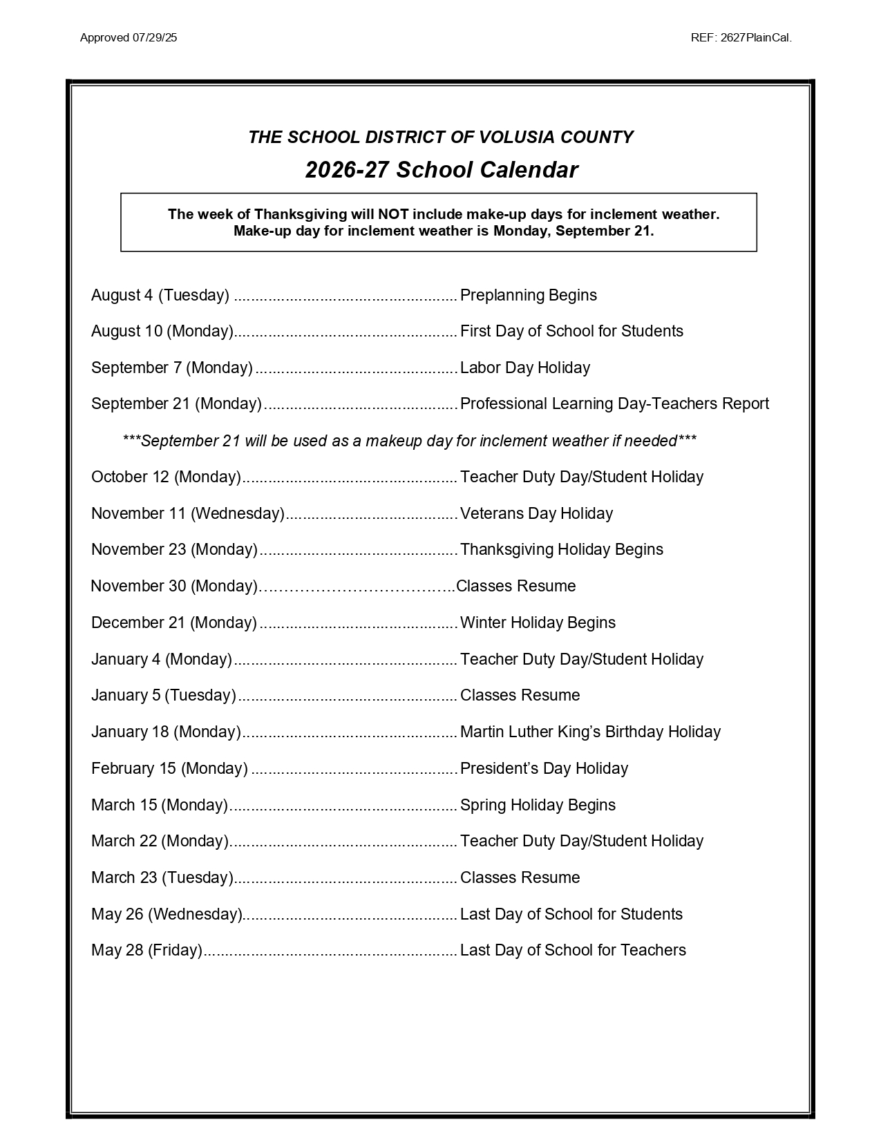Fayette County Public Schools Holiday Calendar 2026-2027