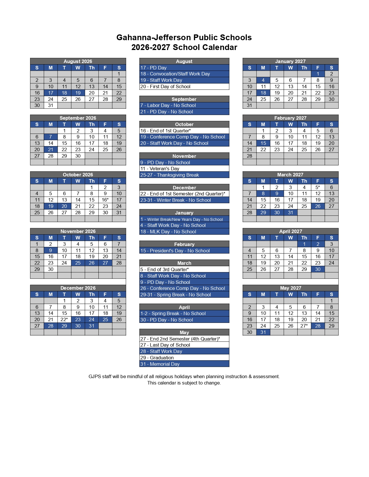 The final part of the school year includes Memorial Day, which usually falls in late May. This holiday often coincides closely with the last days of school and serves as a moment to honor those who served in the military. Shortly after this, the academic year concludes, and students begin their summer break, which is the longest holiday period of all.