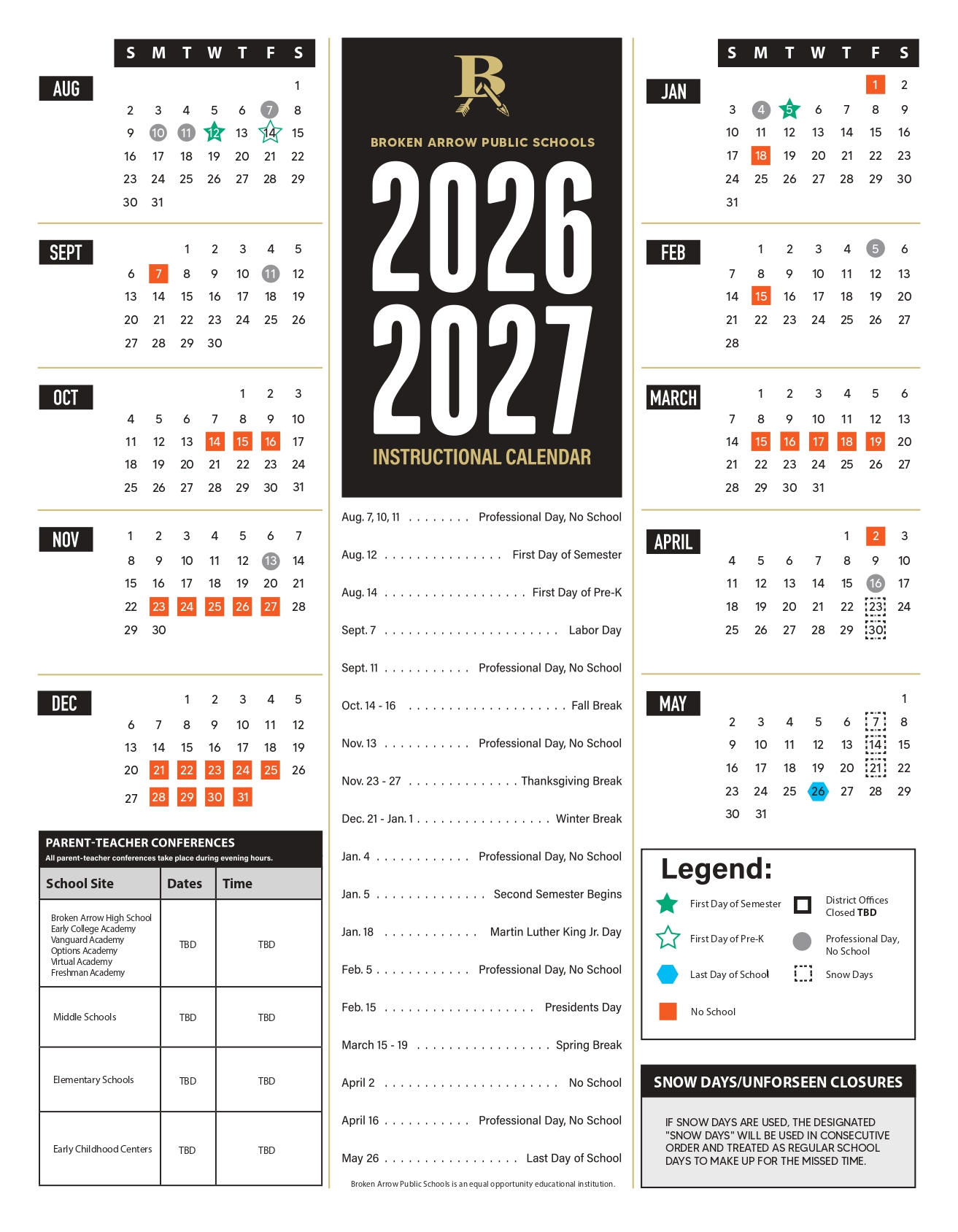 Broken Arrow Public Schools Calendar 2026-2027