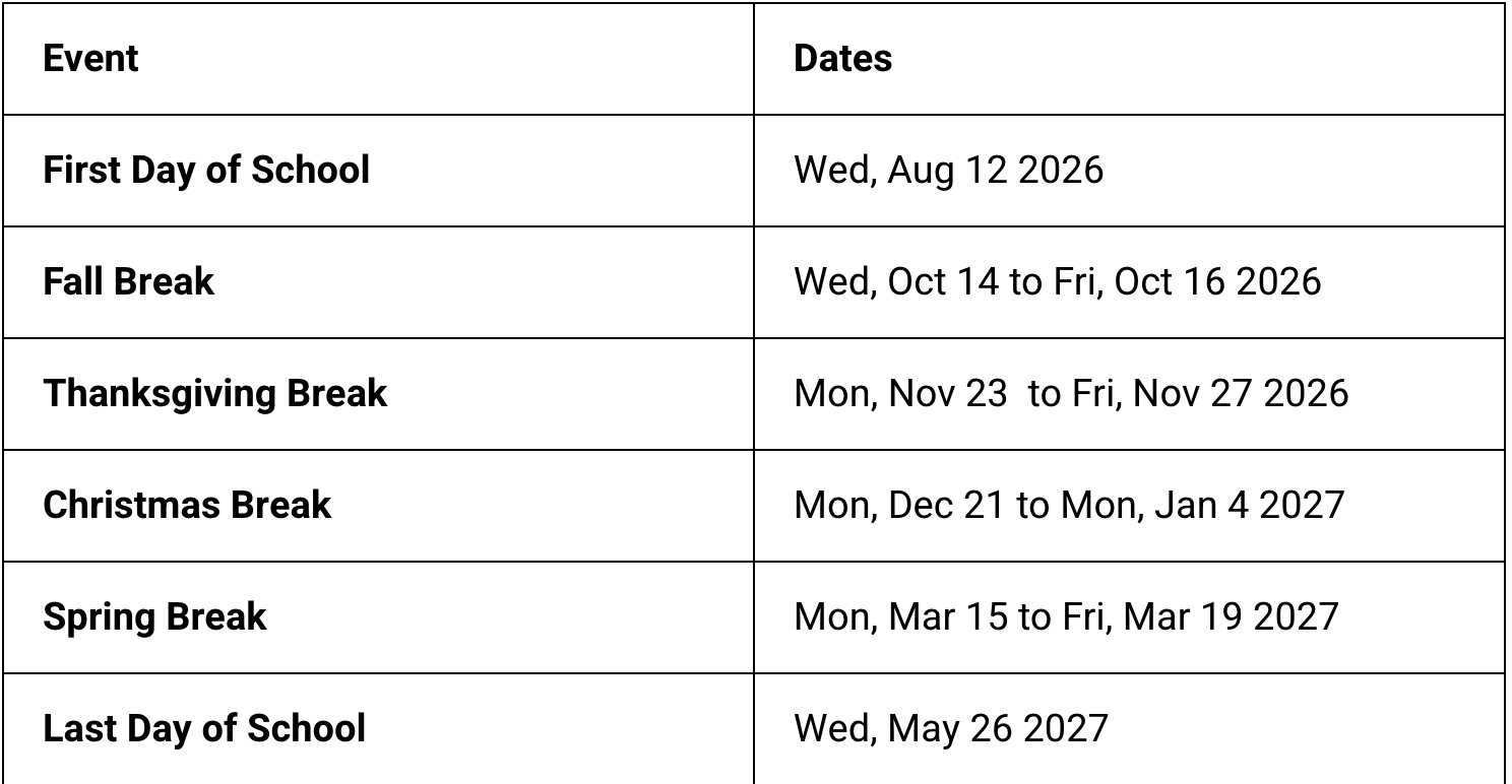 Broken Arrow Public Schools Holiday Breaks 2026-2027