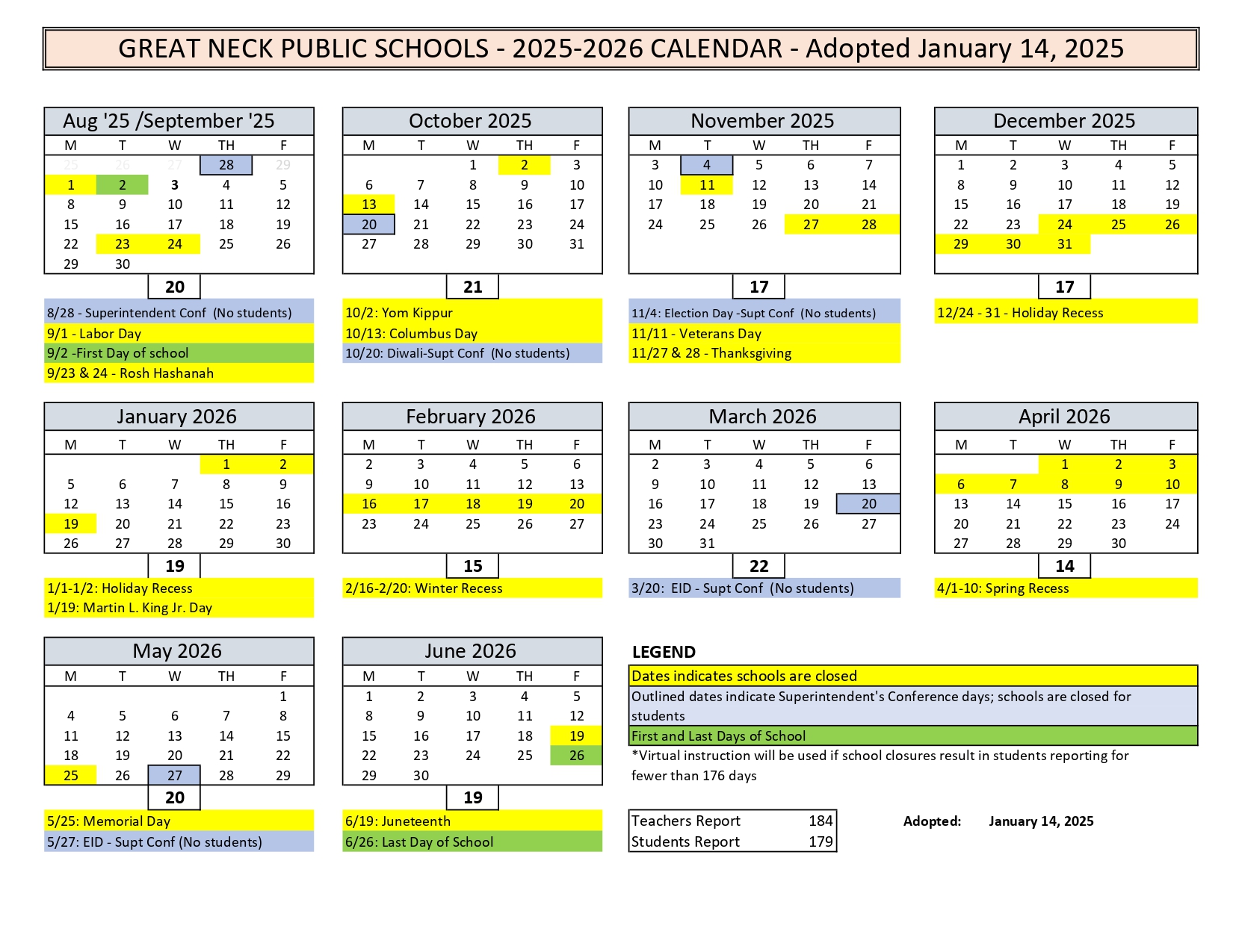 Great Neck Public Schools Calendar 2025-2026