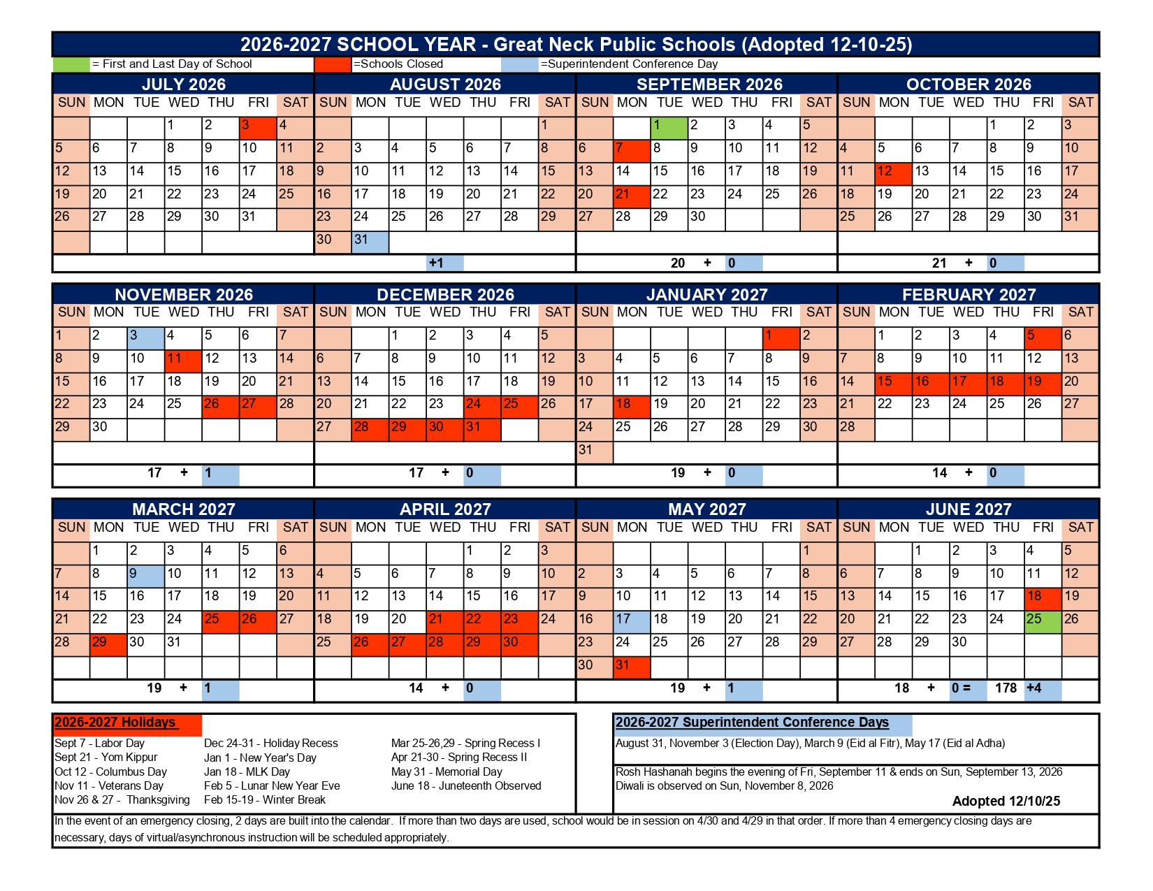 Great Neck Public Schools Holiday Calendar 2026-2027