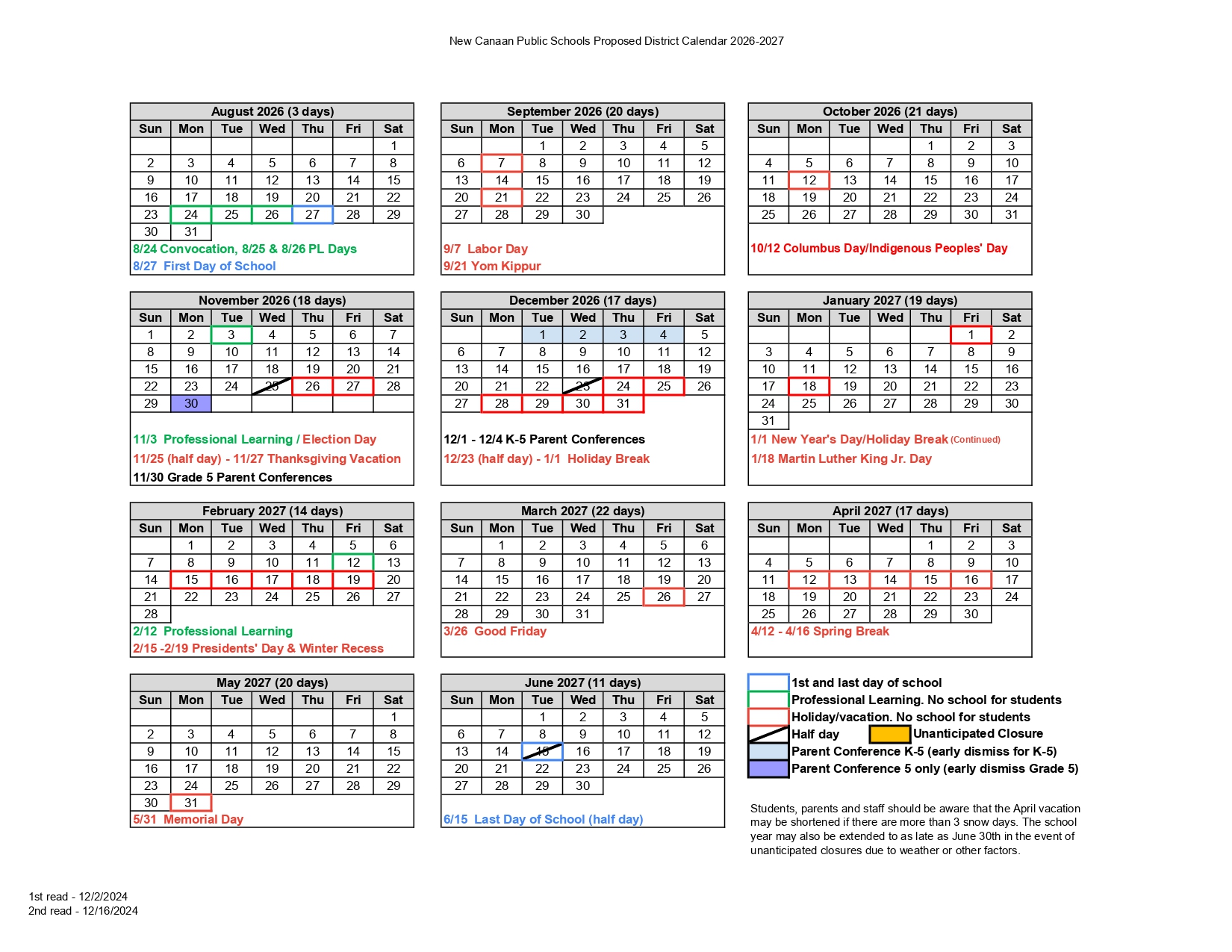 New Canaan Public Schools Holiday Calendar 2025-2026