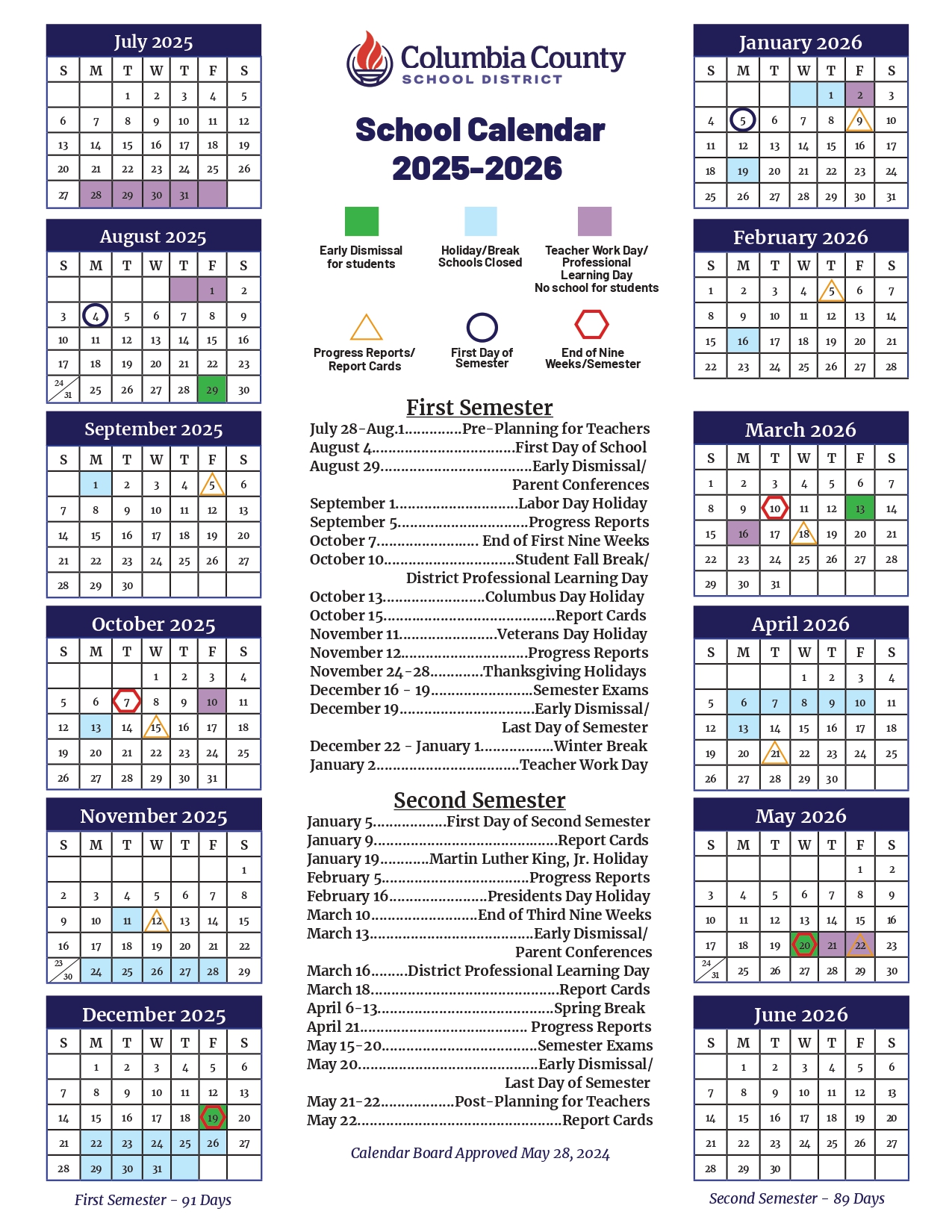 Columbia County Schools Calendar 2026