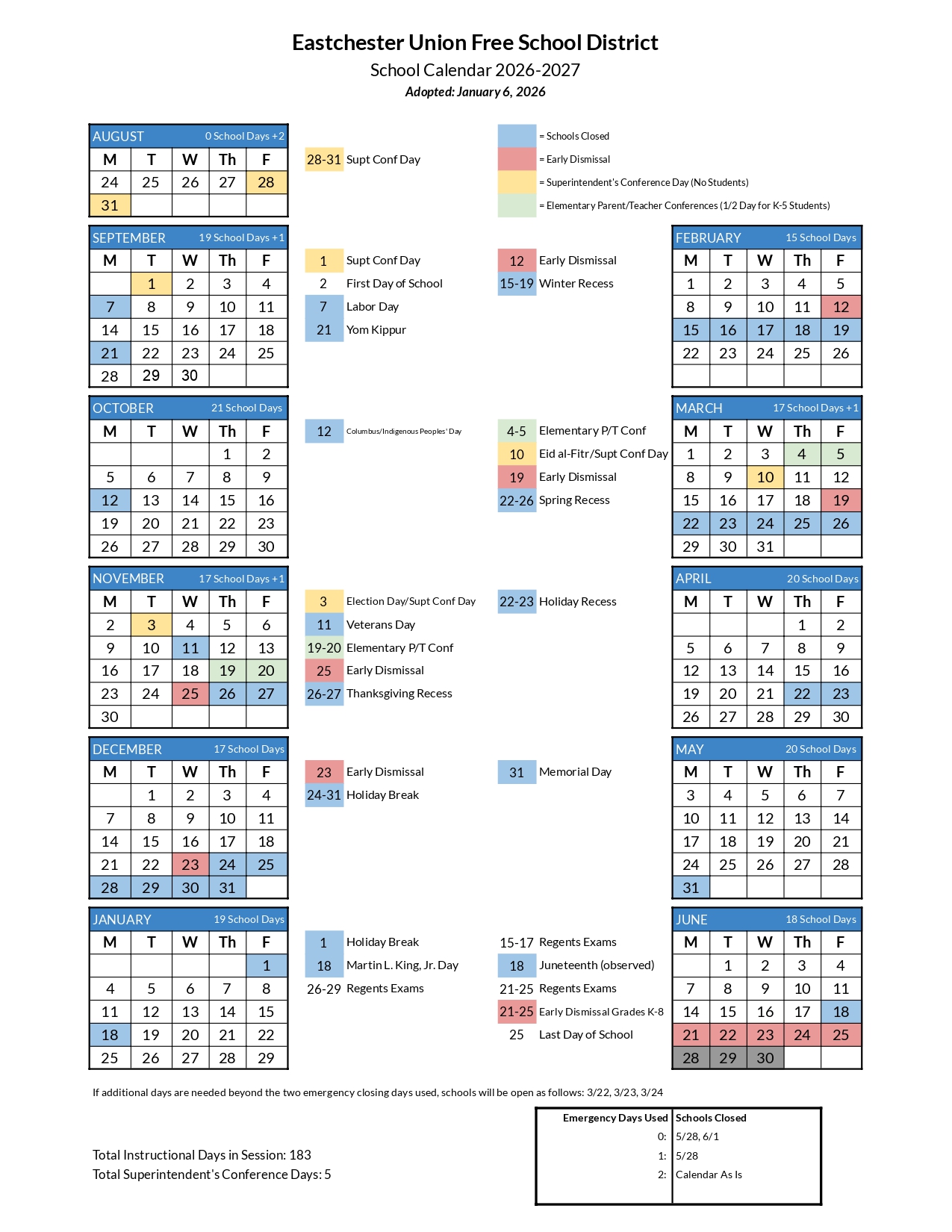 Ithaca City School District Calendar 2026-2027