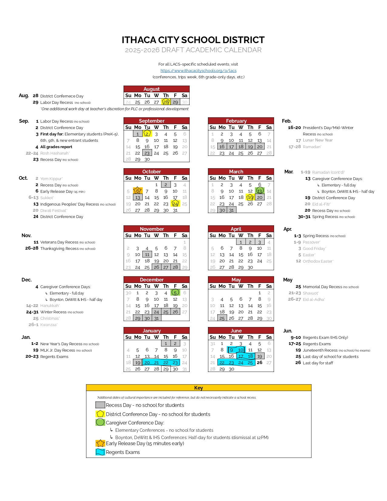 Ithaca City School District Calendar 2026